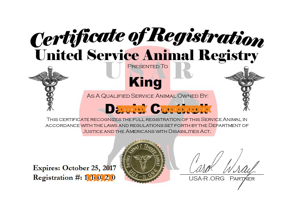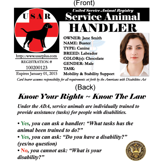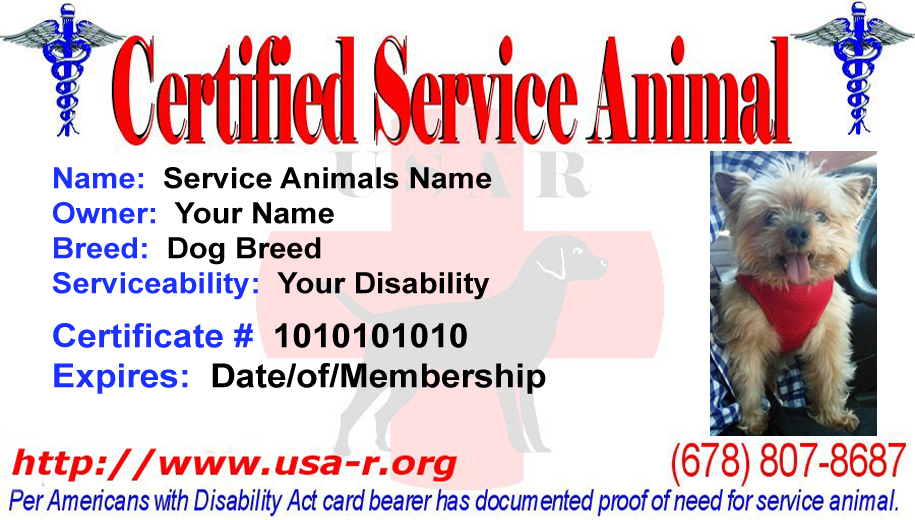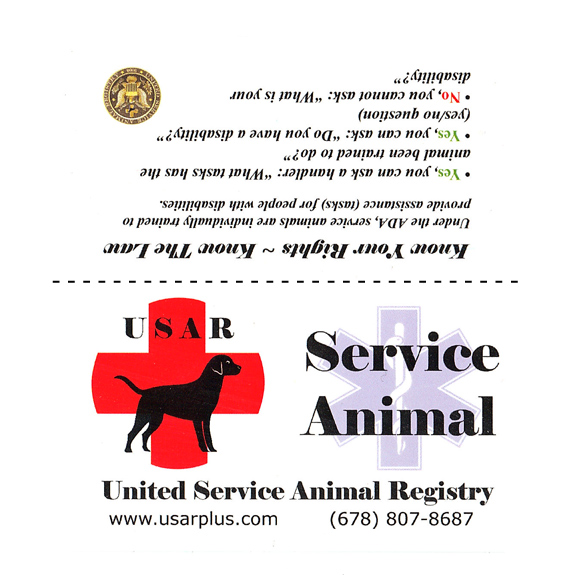 To Verify if a Service Animal/Therapy Animal is REGISTERED on this site Click Here