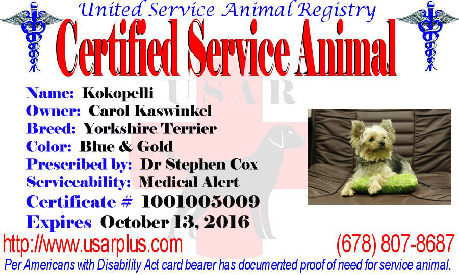 you have registered your animal to be a "Service Animal" and claim the protection of all rights as